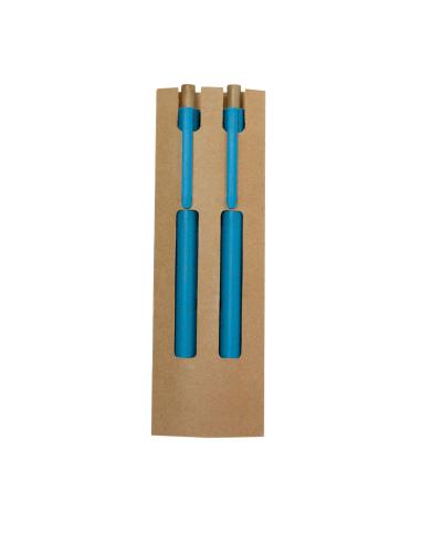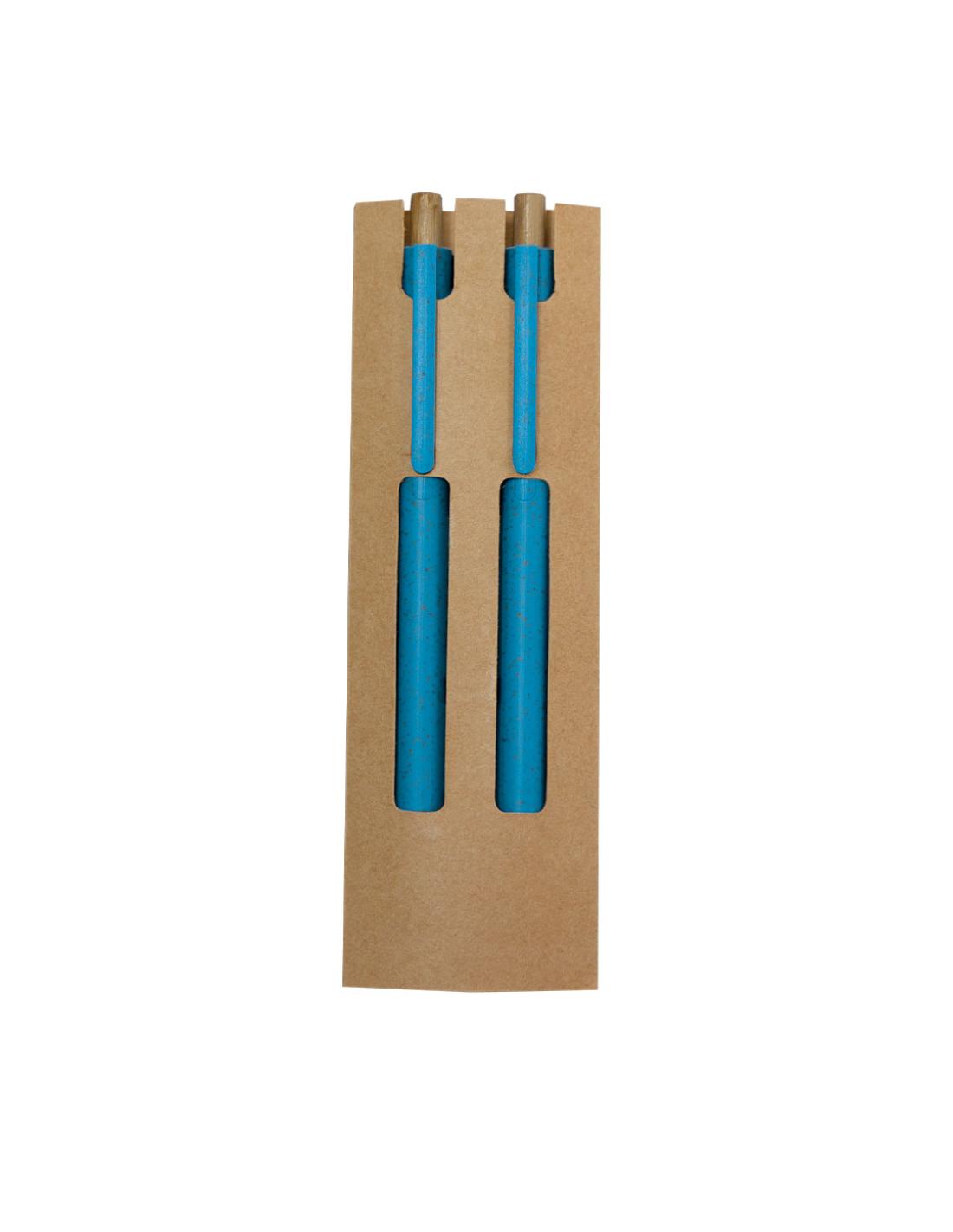 Set de bolígrafo y lápiz eterno fabricados en caña de trigo y bambú. Bolígrafo con mecanismo pulsador fabricado en bambú de tinta azul y clip a juego. Y lápiz con mecanismo pulsador fabricado en bambú con punta eterna, para así usar siempre el mismo lápiz y no generar residuos. Presentados en estuche de cartón reciclado. Con distintivo de caña de trigo impreso.Elaborado con elementos vegetales para así fomentar la utilización de materias primas naturales y reducir las emisiones contaminantes.