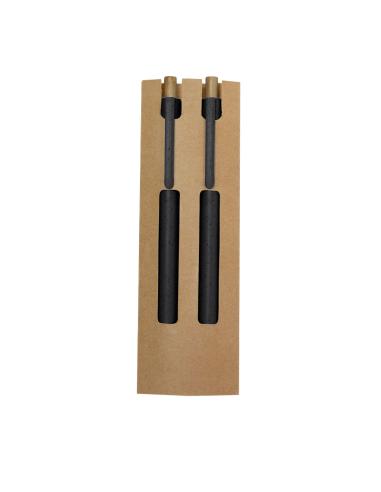 Set de bolígrafo y lápiz eterno fabricados en caña de trigo y bambú. Bolígrafo con mecanismo pulsador fabricado en bambú de tinta azul y clip a juego. Y lápiz con mecanismo pulsador fabricado en bambú con punta eterna, para así usar siempre el mismo lápiz y no generar residuos. Presentados en estuche de cartón reciclado. Con distintivo de caña de trigo impreso.Elaborado con elementos vegetales para así fomentar la utilización de materias primas naturales y reducir las emisiones contaminantes.