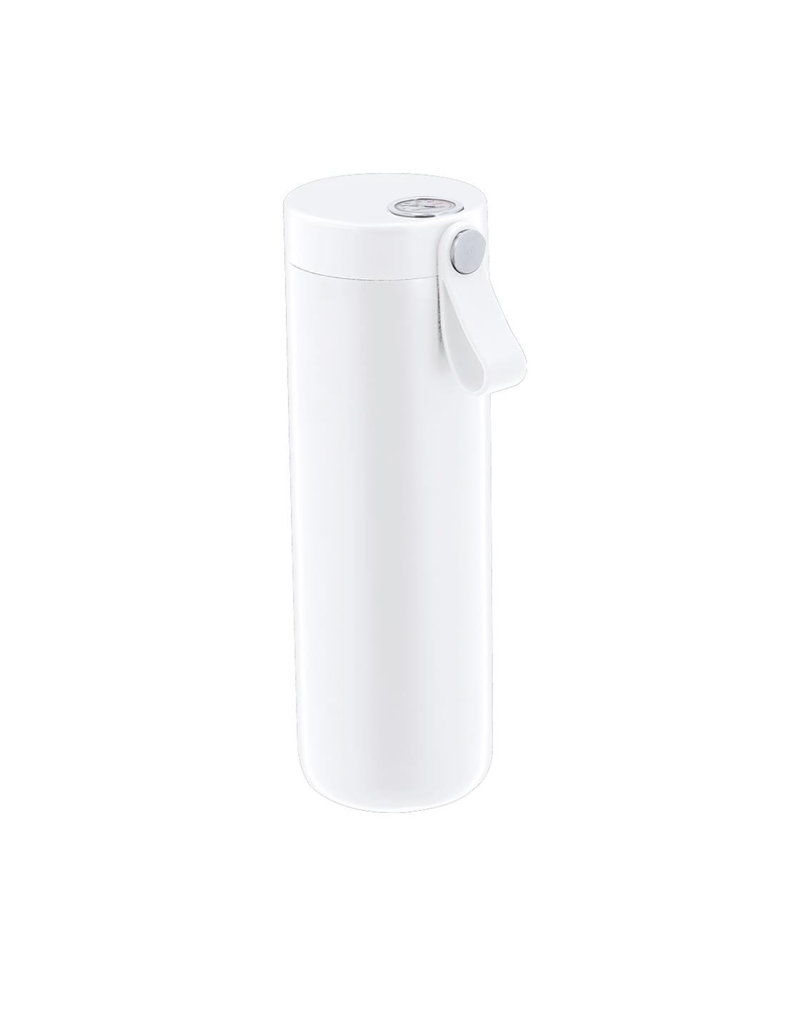 Bidón térmico de acero inox y doble pared de 500 ml de capacidad, con medidor de temperatura analógica, con rango de 0º a 100º. Con tapón de seguridad, asa de silicona integrada y cuerpo a juego. Libre de BPA.