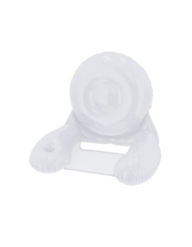 Original sillón con reposabrazos y respaldo en resistente PVC de color sólido y abado brillo. Con resistente redecilla para sentarse de 56x32 cm en poliéster de color blanco. Con plegado especial para fácil impresión.