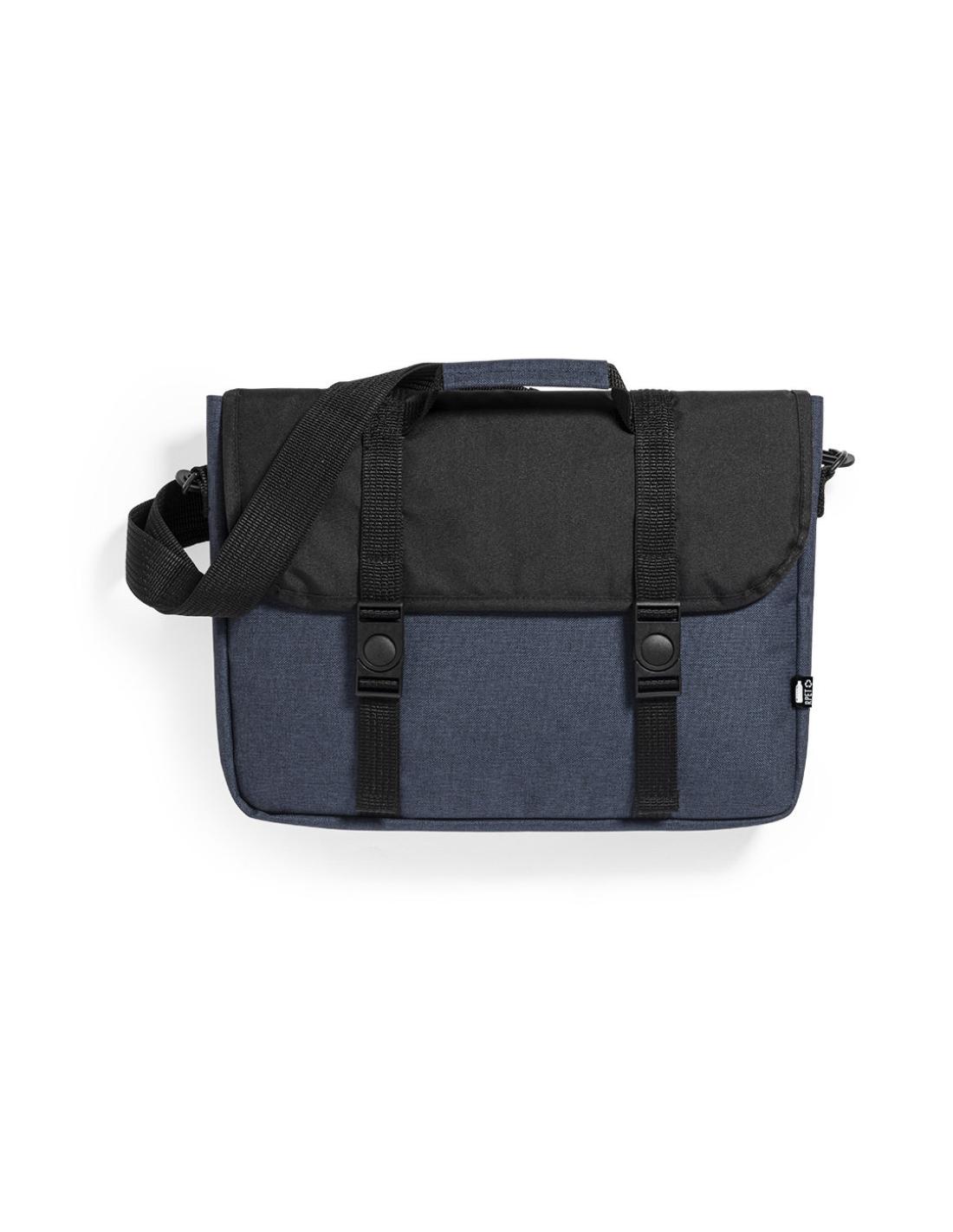 Portadocumentos de línea nature y en resistente poliéster 600D RPET reciclado y libre de PVC, fruto de la combinación del proceso de reciclaje de materiales plásticos junto con la técnica milenaria de fabricación del fieltro, dando como resultado un material de eco-tendencia de origen reciclado. Con acolchado y bolsillo principal con tiras de cierre de hebilla bolsillo interior de cierre de cremallera y cinta bandolera ajustable para hombro. Con asa de transporte reforzada y accesorio en parte posterior para ajuste en barra de trollley. Resistencia hasta 7kg, con distintivo RPET en etiqueta exterior.