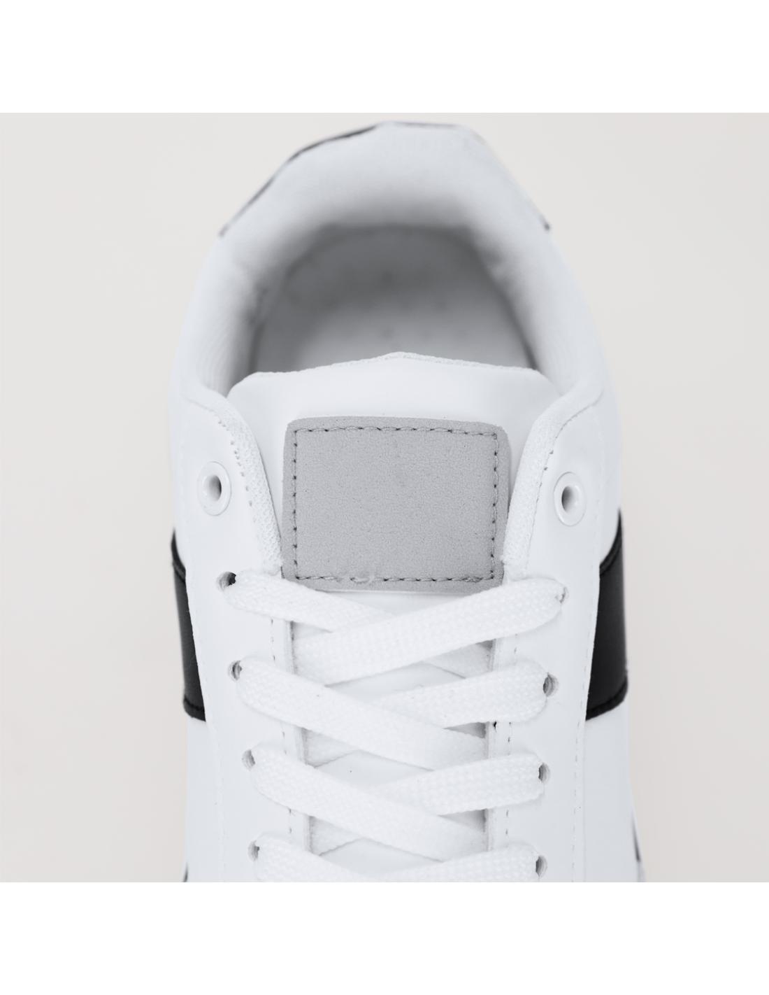 Zapatilla de diseño con silueta de perfil bajo, confeccionada con una parte superior de piel suave y refuerzos en ante que aportan estilo.Cuenta con suela acolchada para mayor comodidad y suela inferior de goma que garantiza tracción y resistencia. Presenta un cierre con cordones a tono. Incluye detalle a juego en la lengüeta, ideal para personalización mediante impresión.