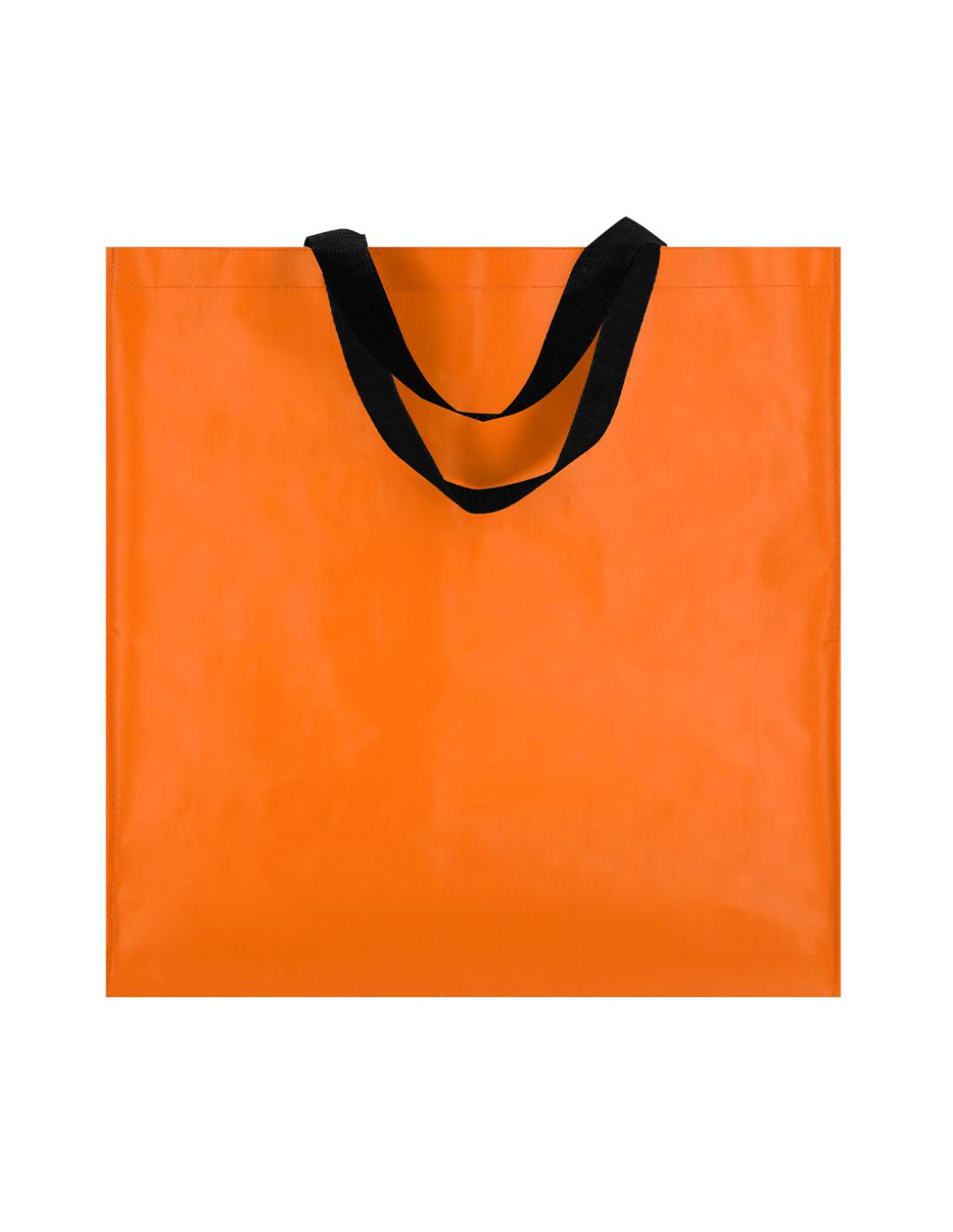 Bolsa fabricada en pp-woven laminado. Con asas largas de 45x3cm reforzadas con costura en X y resistencia de hasta 8kg.