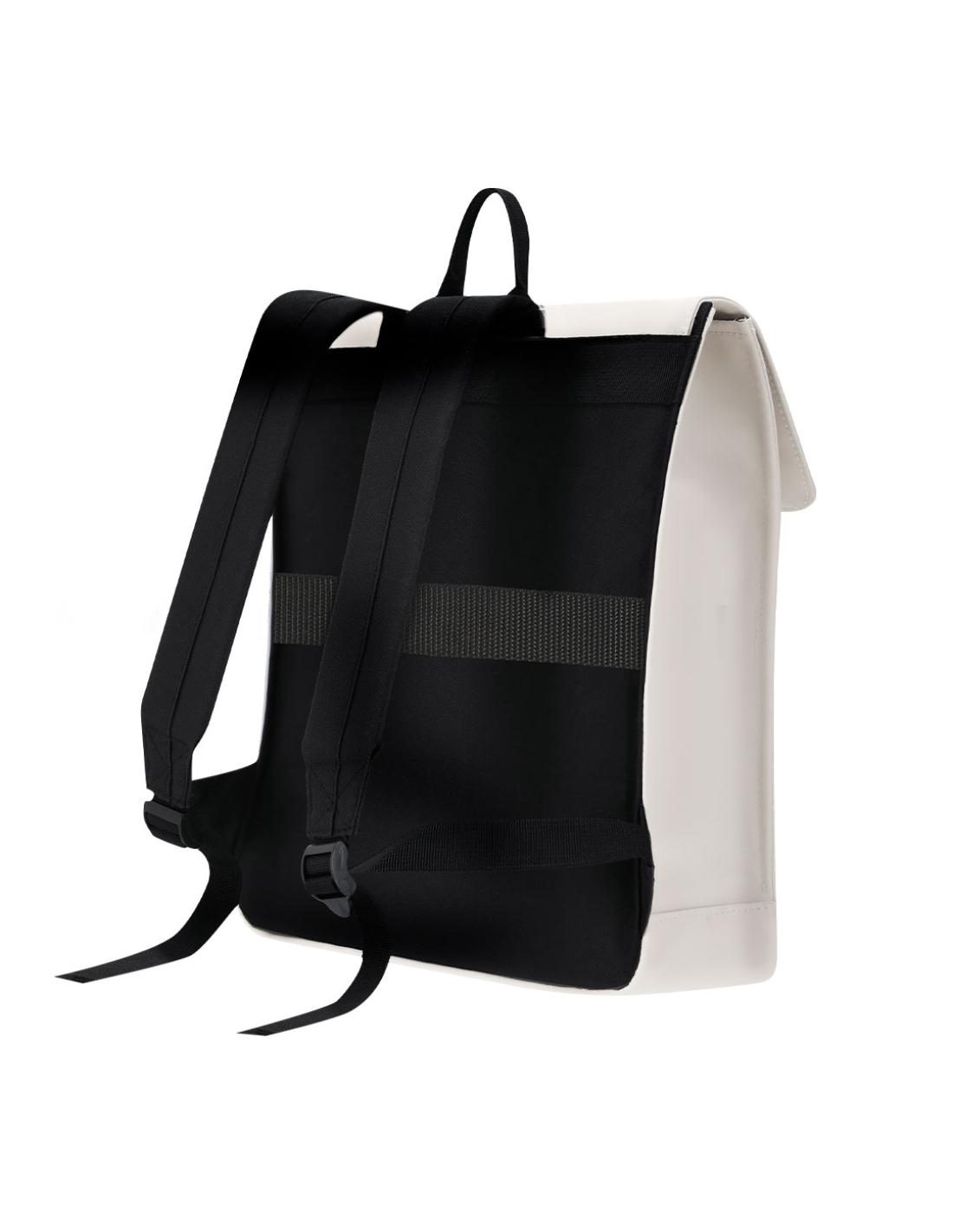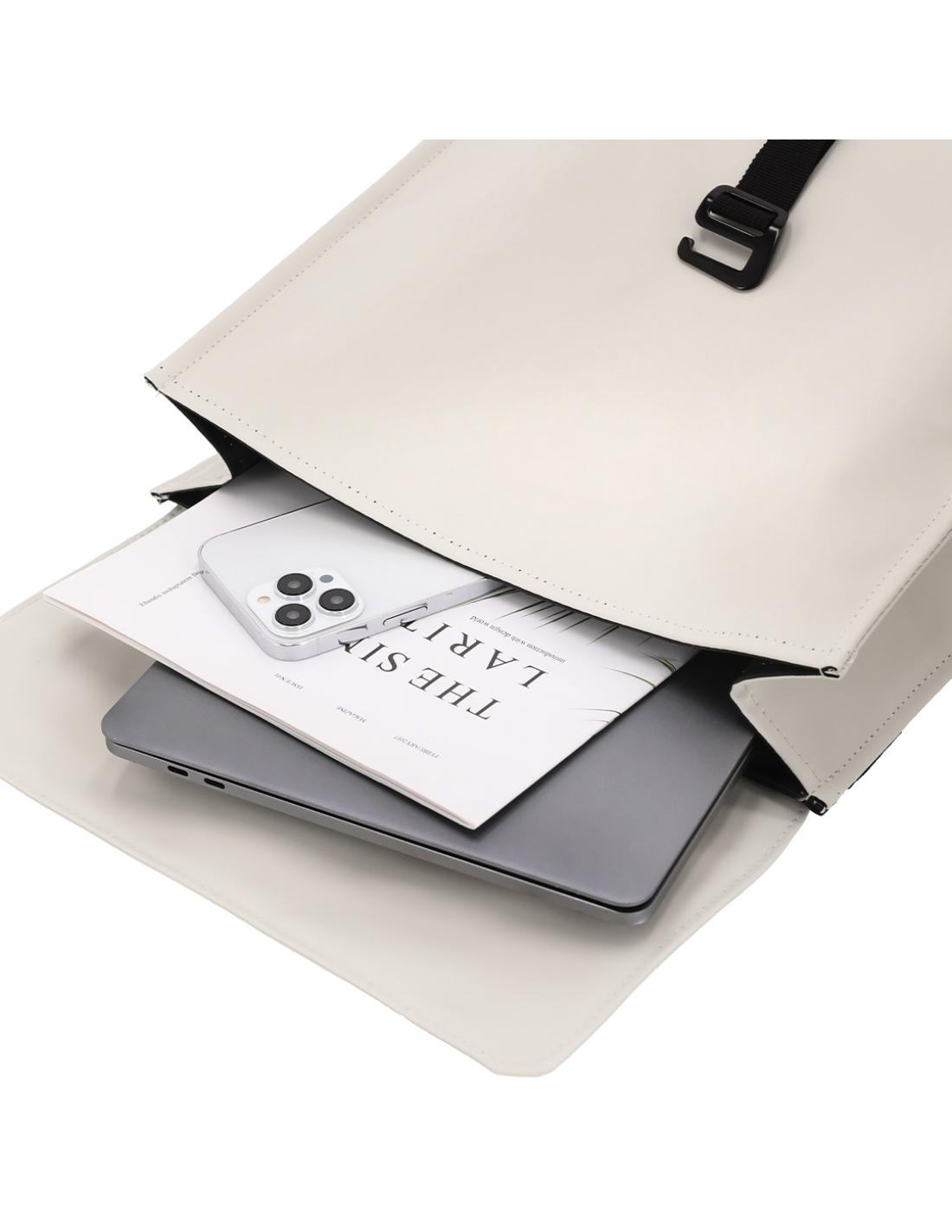 Mochila confeccionada en suave PU. Con bolsillo principal y sistema de cierre de hebilla. Interior de gran capacidad con compartimento acolchado para portátiles de hasta 14 pulgadas o tablet de hasta 10 pulgadas. Espalda y asas acolchadas. Incluye cinta para trolley.
