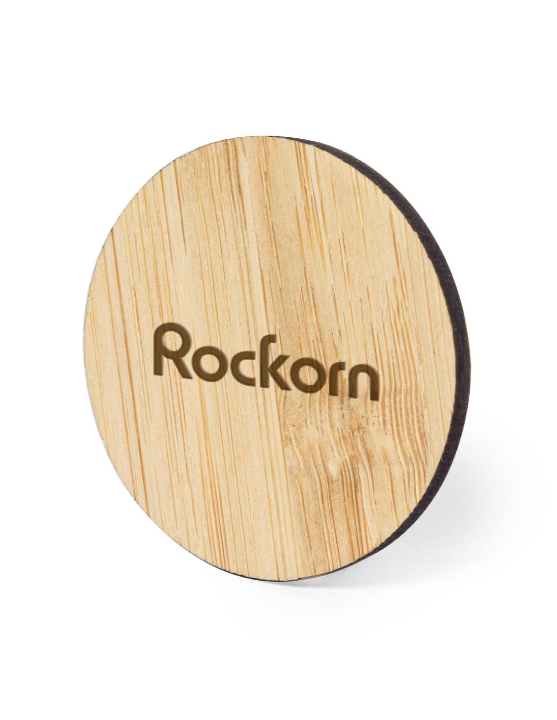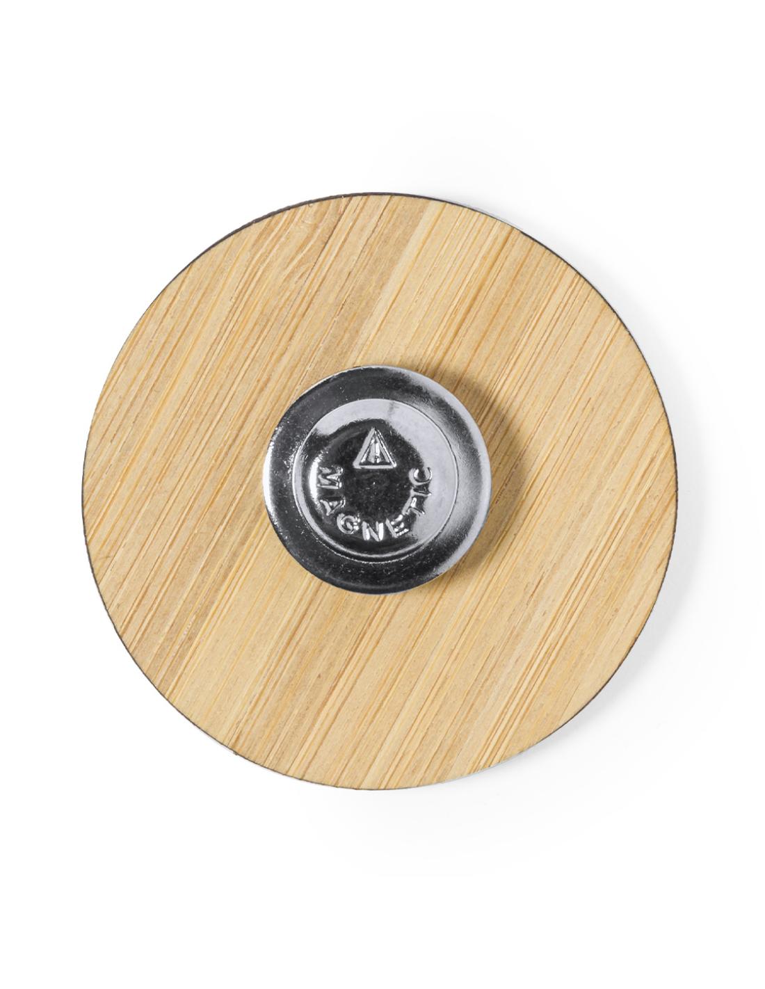 Pin de línea nature, hecho en bambú procedente de cortes naturales. De fabricación europea y disponible en diseños circular y cuadrado, con pin magnético.