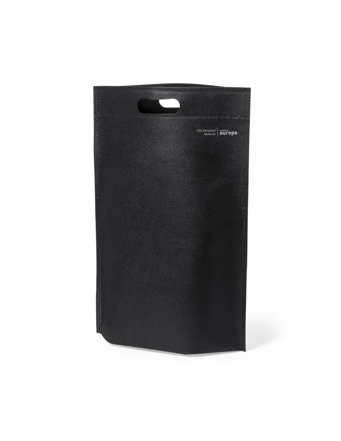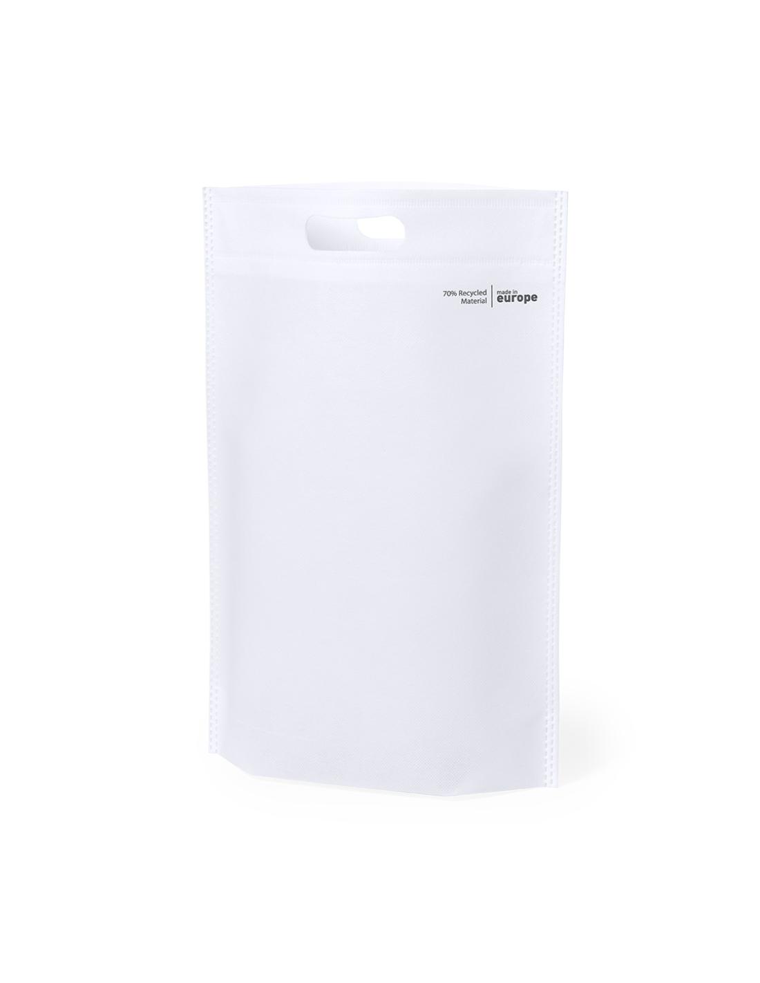 Bolsa de línea nature, fabricada en non-woven reciclado de 70g/m2. De fabricación europea, con acabado termosellado, fuelle en la base, asa reforzada troquelada y distintivo eco/made in sobre la bolsa.