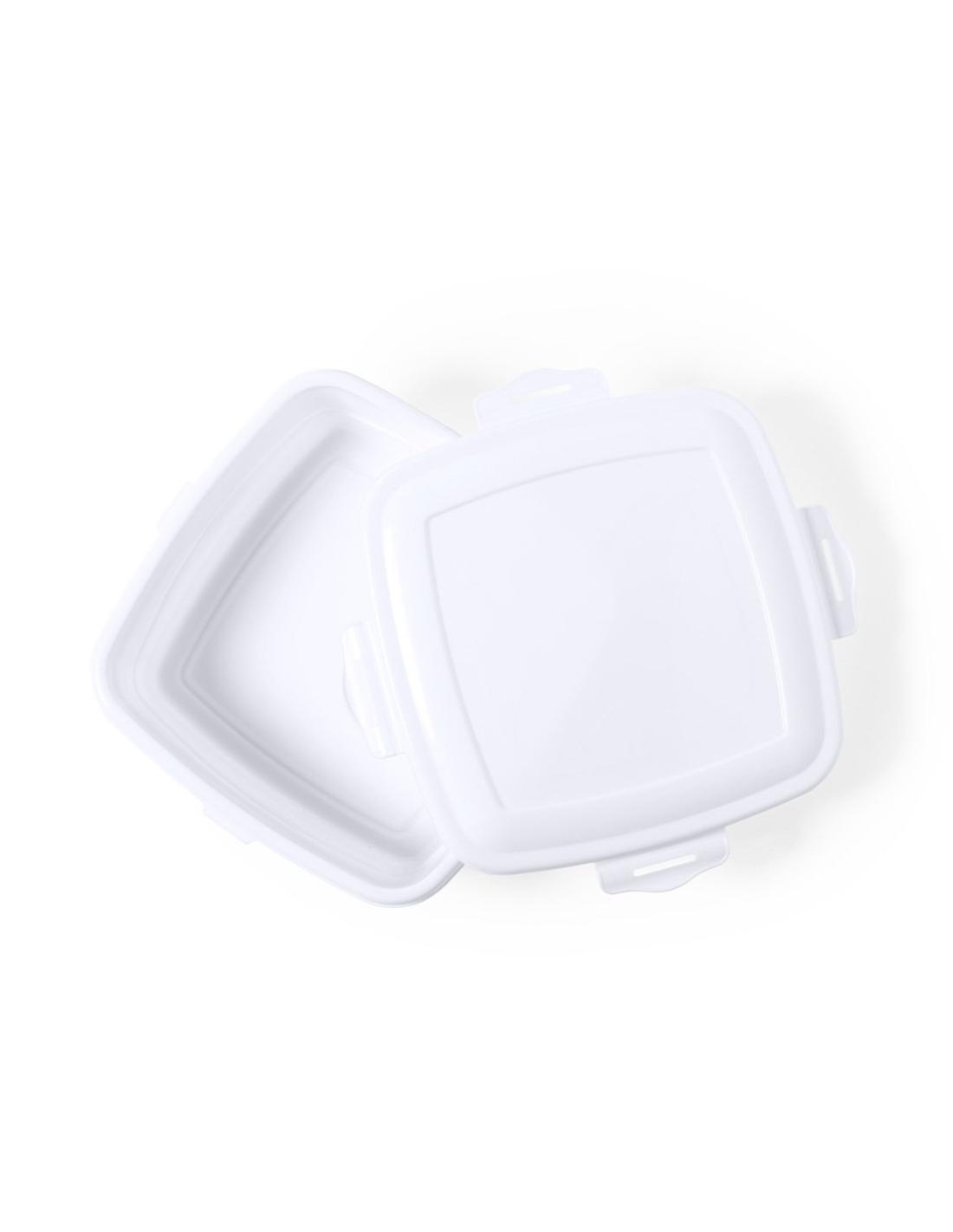 Fiambrera de 1L de capacidad, hecha en PP de color blanco. De fabricación europea y con certificación Food Grade, garantizando la seguridad cuando los alimentos entran en contacto con el material usado para fabricar el producto. Formato cuadrado, con cierre de seguridad en todos sus lados.