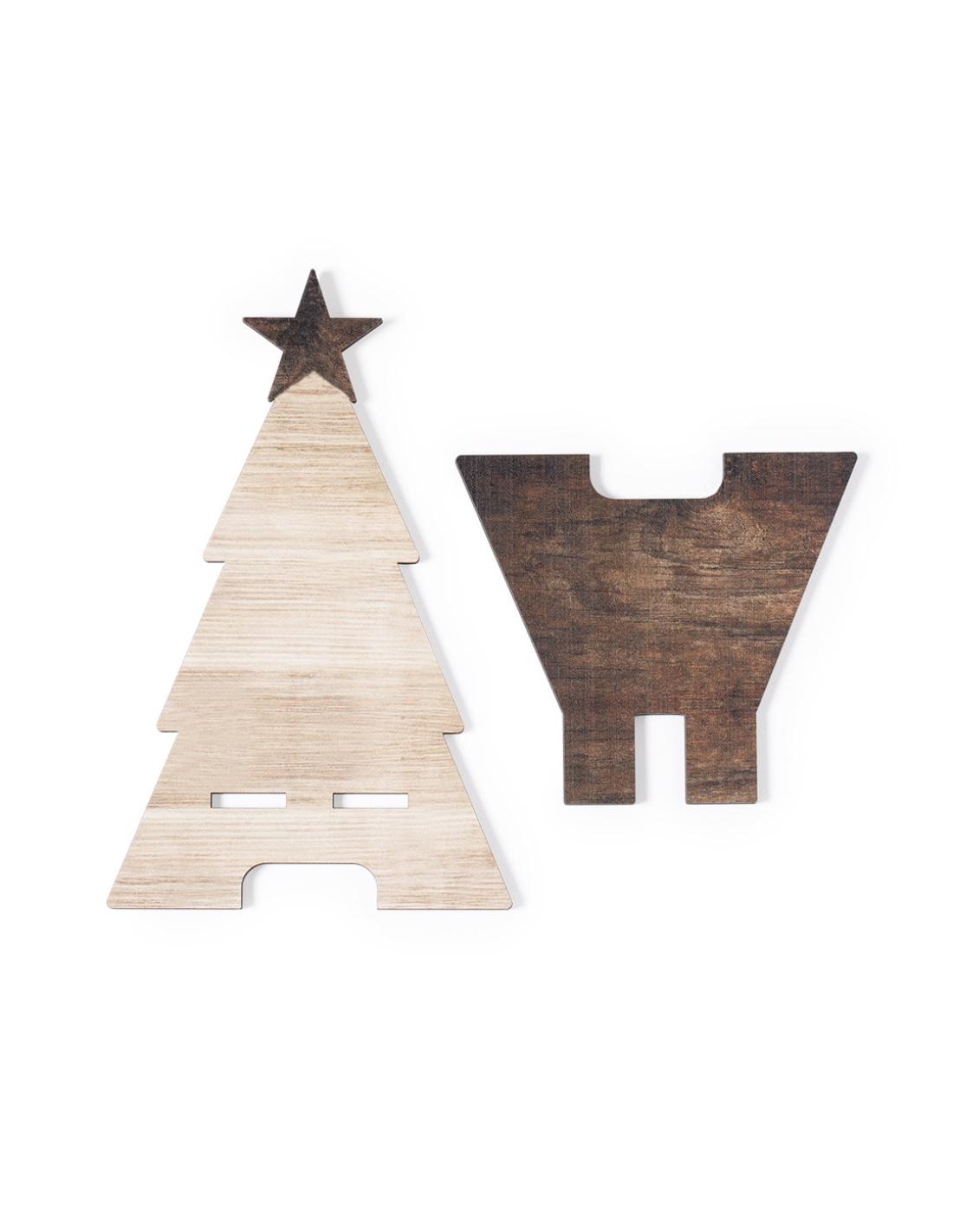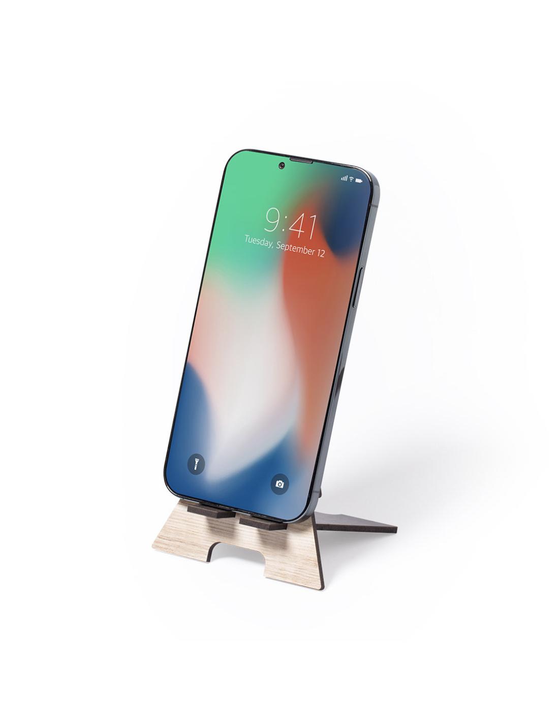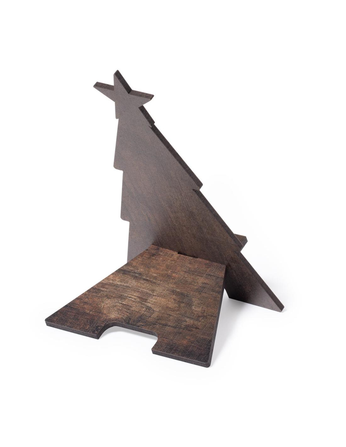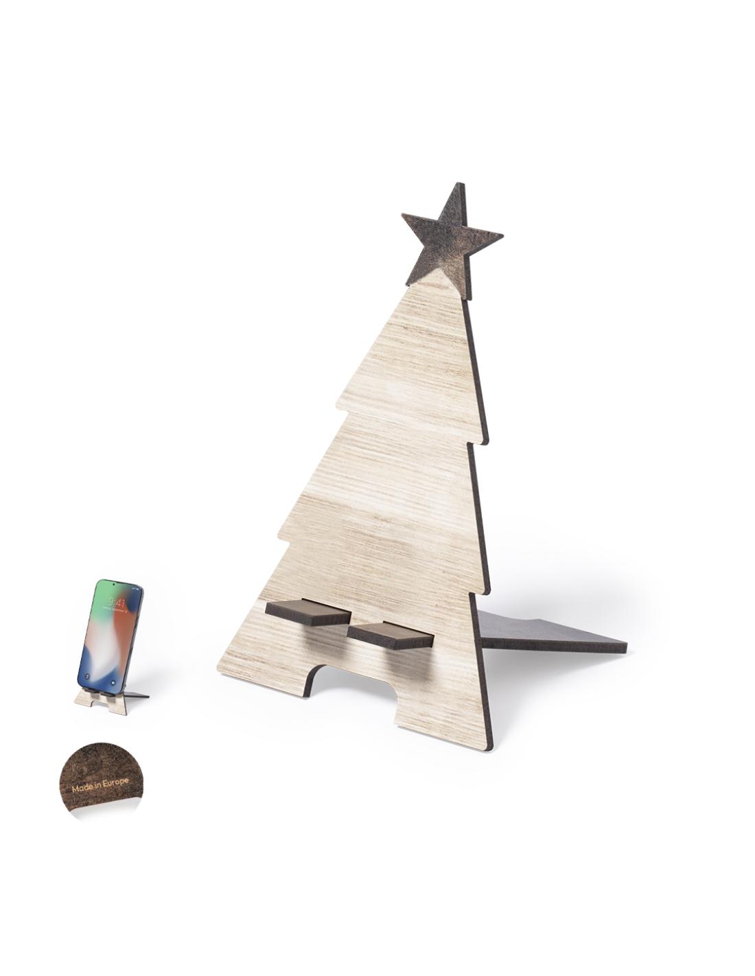 Soporte para smartphone con diseño árbol de navidad, fabricado en madera natural y de original acabado bicolor. De fácil montaje y con distintivo Made In Europe.