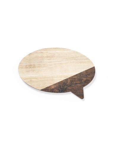 Original imán bocadillo fabricado en madera natural y de acabado bicolor. Amplia superficie de marcaje y distintivo Made In Europe.