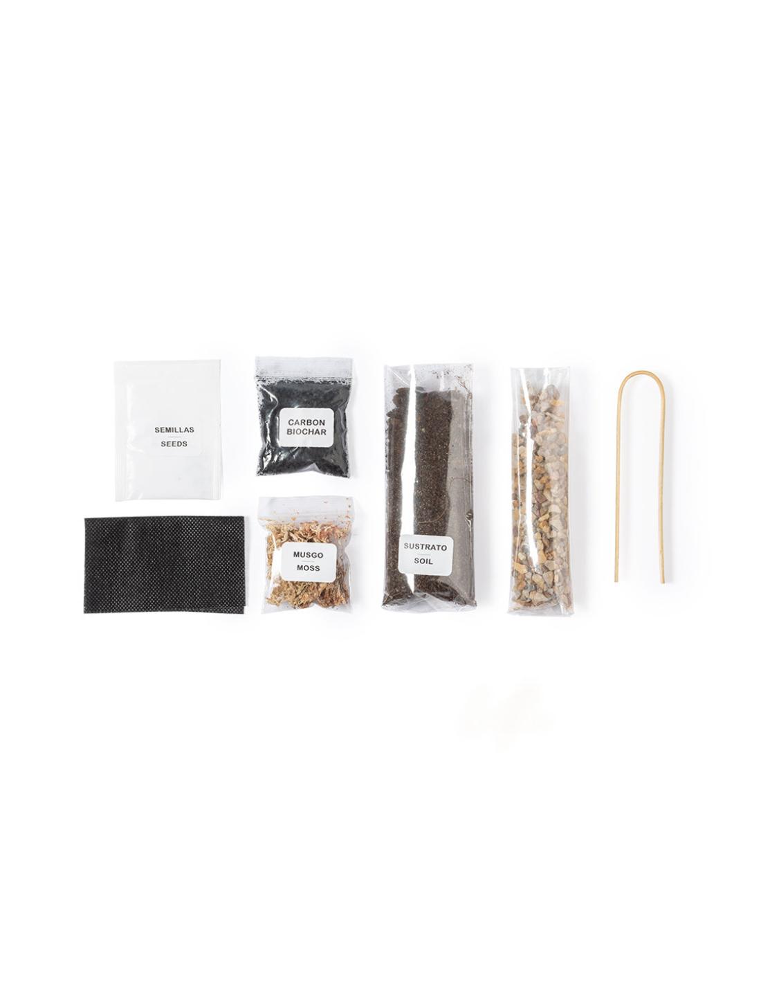 Terrario con semillas de cactus. En perfecta combinación entre diseño y ecología, este jardín interior contiene todo lo necesario para cultivar de forma vertical. Fabricado en cristal de borosilicato, que ofrece una resistencia, estética y durabilidad excepcionales. Con tapa de corcho natural para fácil marcaje y sustrato. Instrucciones de plantado y pinzas de bambú incluidas, con distintivo Made In Europe.