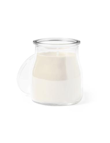 Vela aromática en tarro de cristal, disponible en aromas variados: blanco vainilla rojo frutas del bosque azul océano y verde musgo. Con distintivo Made In Europe.