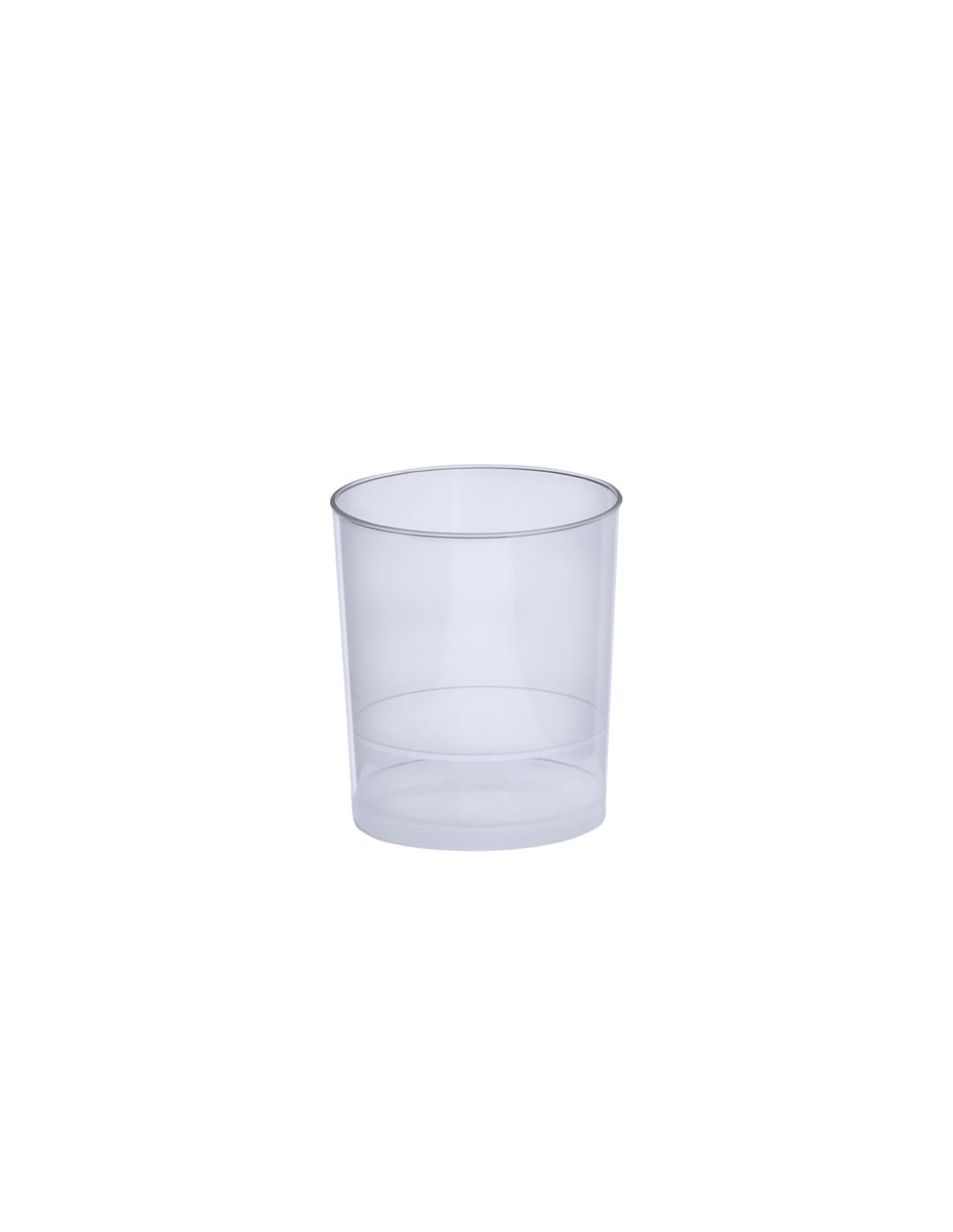 Vaso de 35 ml de capacidad en resistente y flexible material PP. Reutilizable y en acabado translúcido.
