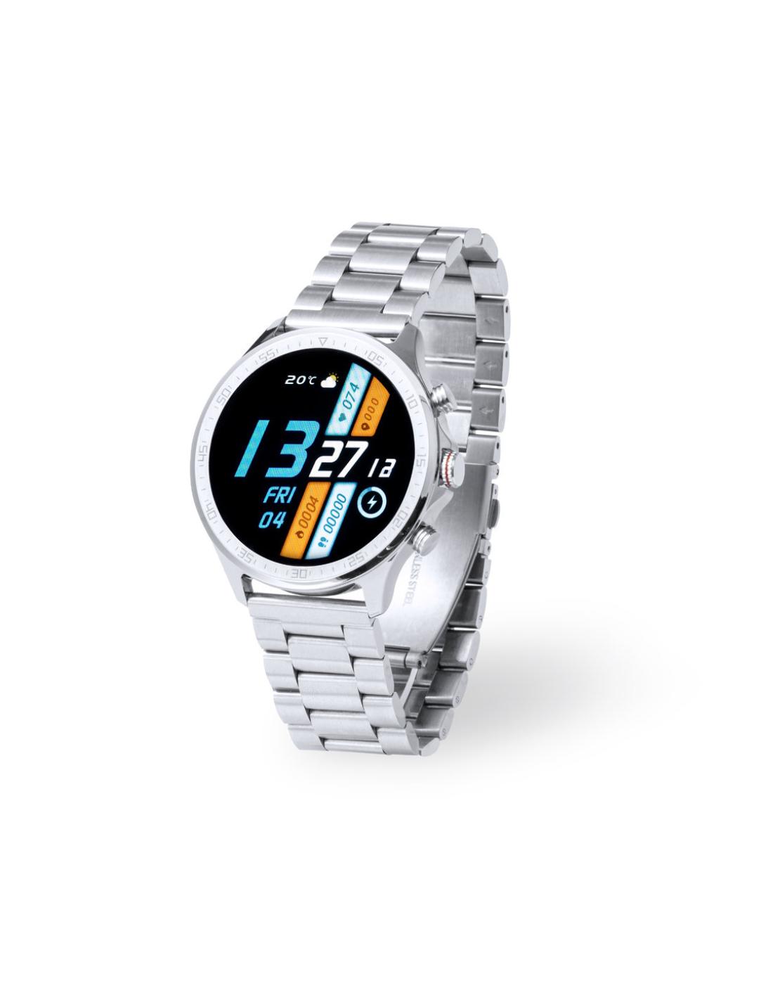 Reloj inteligente multifunción de diseño casual, con conexión Bluetooth. Caja de diseño circular y correa en acero inox a juego. Pantalla TFT táctil de 1,32 pulgadas y batería de 230 mAh, que lo convierten en el gadget perfecto para todo tipo de actividades deportivas, de ocio y para el día a día. Multitud de funciones disponibles, interfaz multilenguaje y resistente a salpicaduras de agua, con APP disponible para iOS y Android. Presentado en caja individual de diseño, con manual de instrucciones en español e inglés.