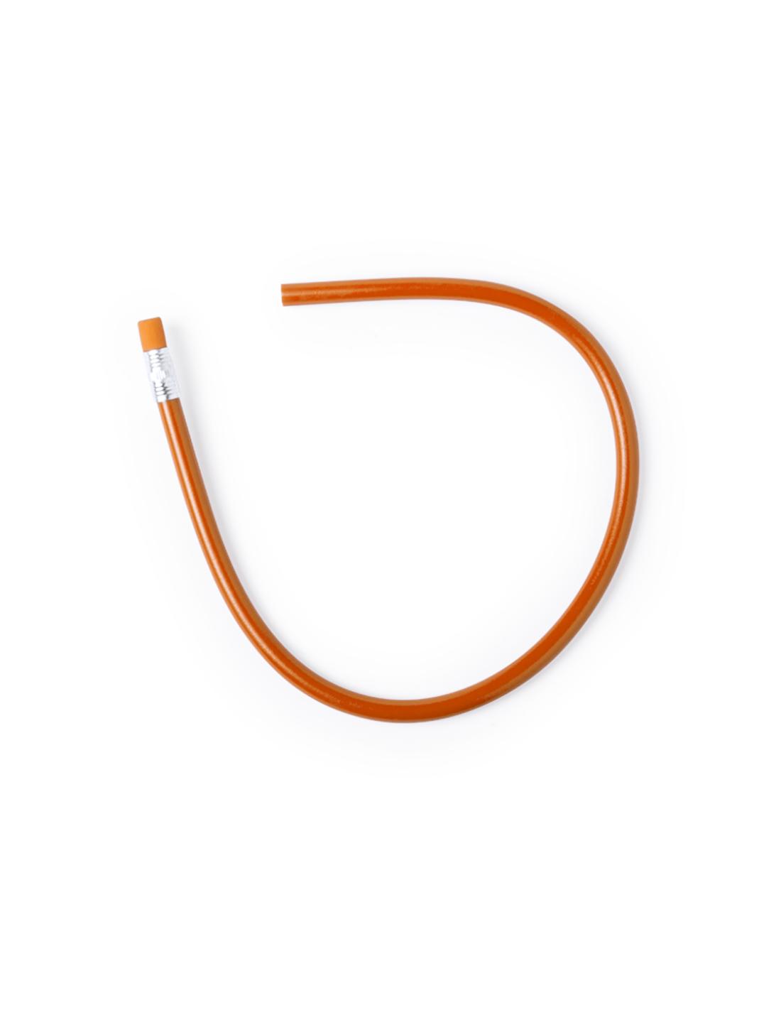 Lápiz flexible extra largo, de acabado brillo. Con cuerpo redondo y goma de borrar a juego. Disponible en variada gama de colores, con mina negra y punta sin afilar.