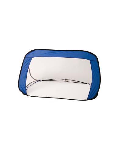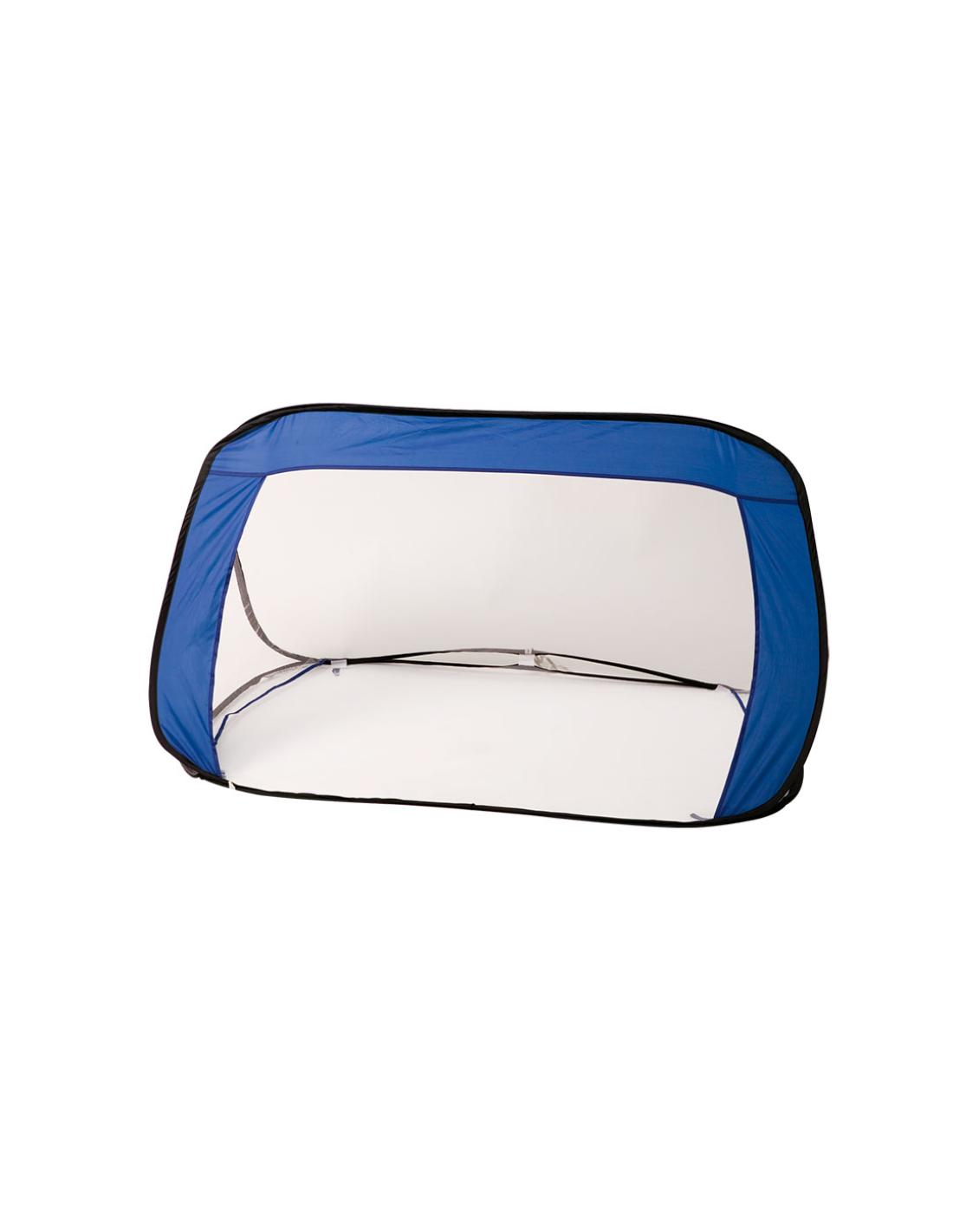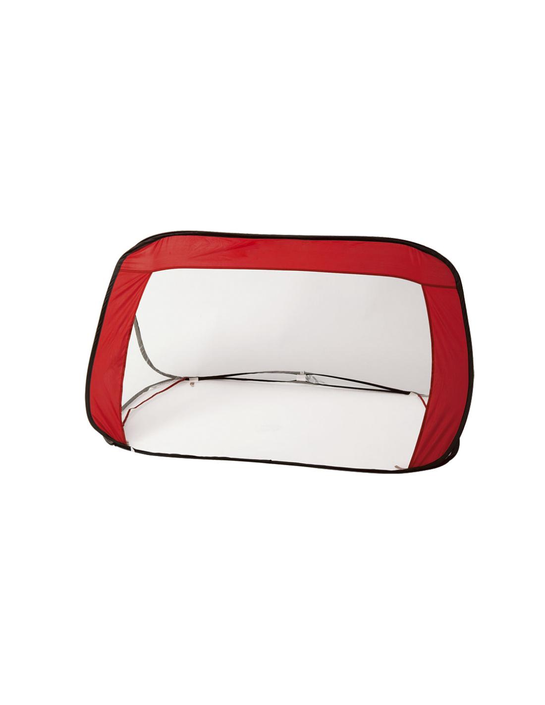 Divertida portería plegable de vivos colores en combinación de resistente nylon y tejido de redecilla. Con cómoda bolsa de transporte con asas.