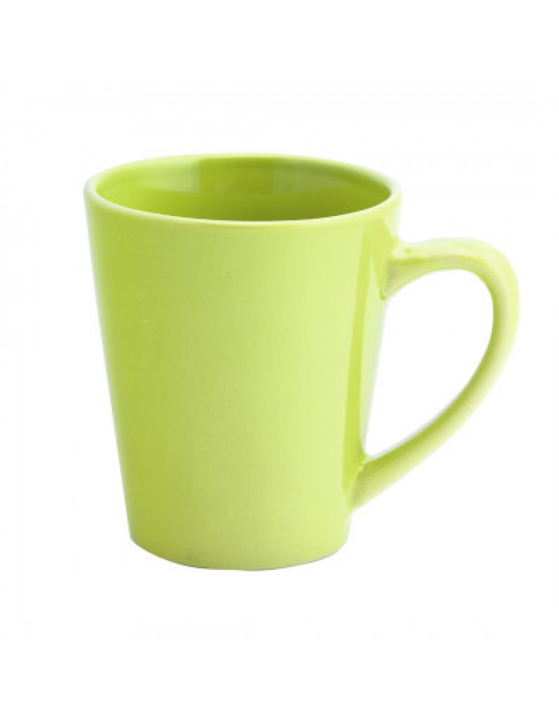 Taza de cerámica de 350ml de capacidad en divertida y amplia gama de vivos colores. Presentada en caja individual.