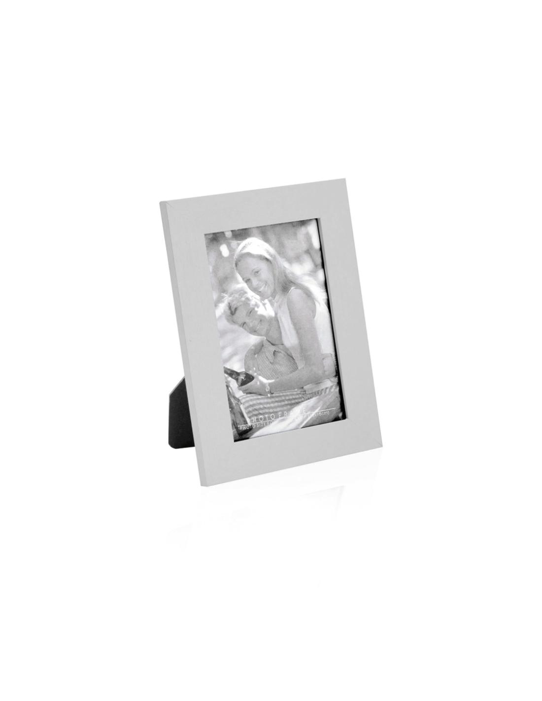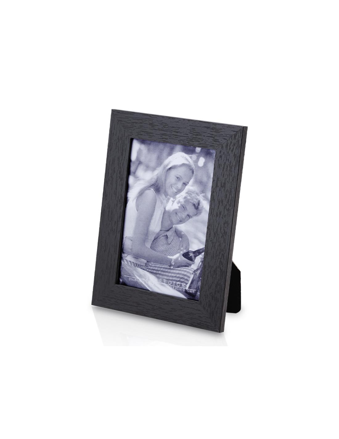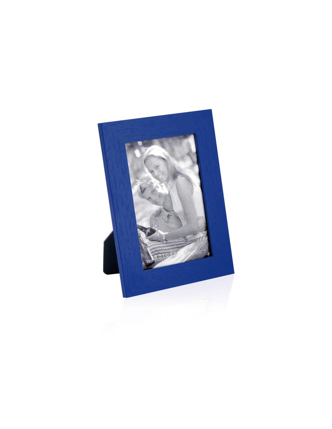 Portafotos en variada gama de colores con marco de madera. Con cristal protector y soporte antideslizante para posicionado horizontal y vertical. Para fotos de hasta 10x15cm y presentado en caja individual.