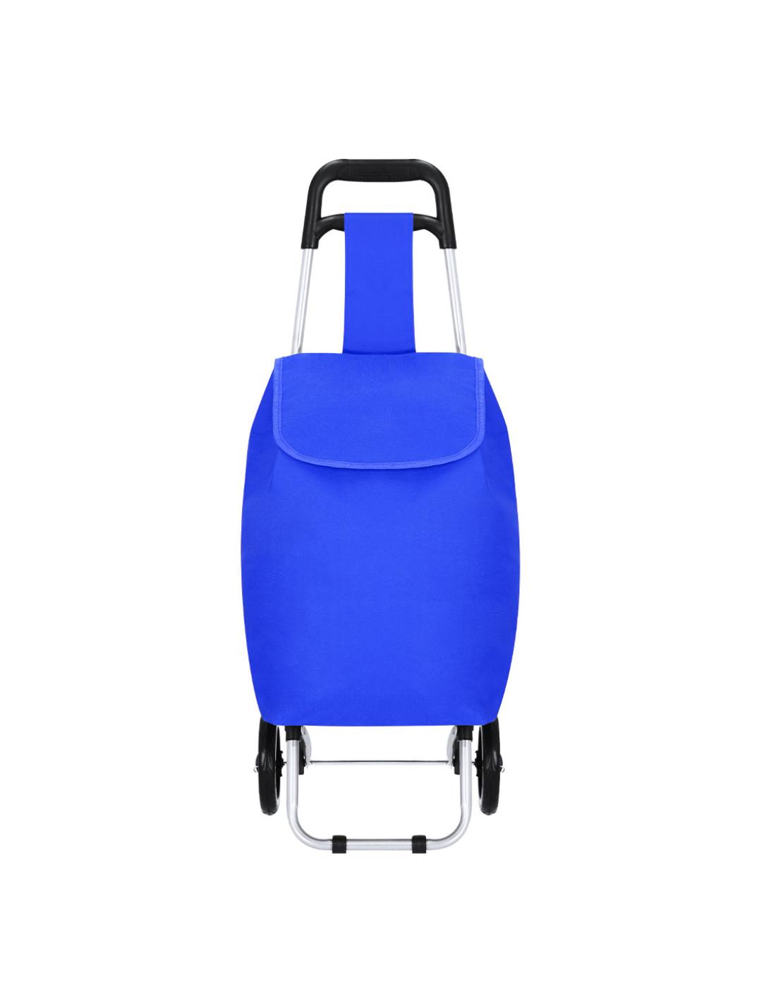 Carro de compra plegable en resistente poliéster 600D de variada gama en vivos colores. Con asas reforzadas, cuerpo metálico tubular, bolsillo de cremallera posterior y soportes con gomas de protección. Ruedas reforzadas de alta calidad.
