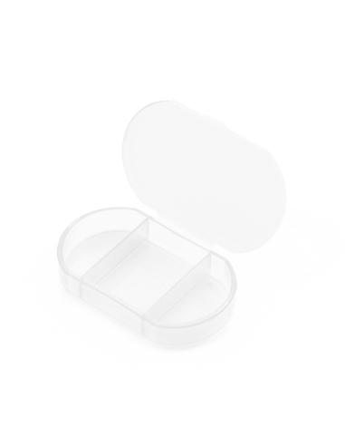 Pastillero de cuerpo translúcido en vivos colores. con 3 compartimentos y cierre de seguridad.