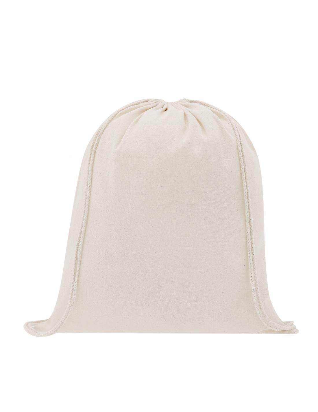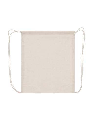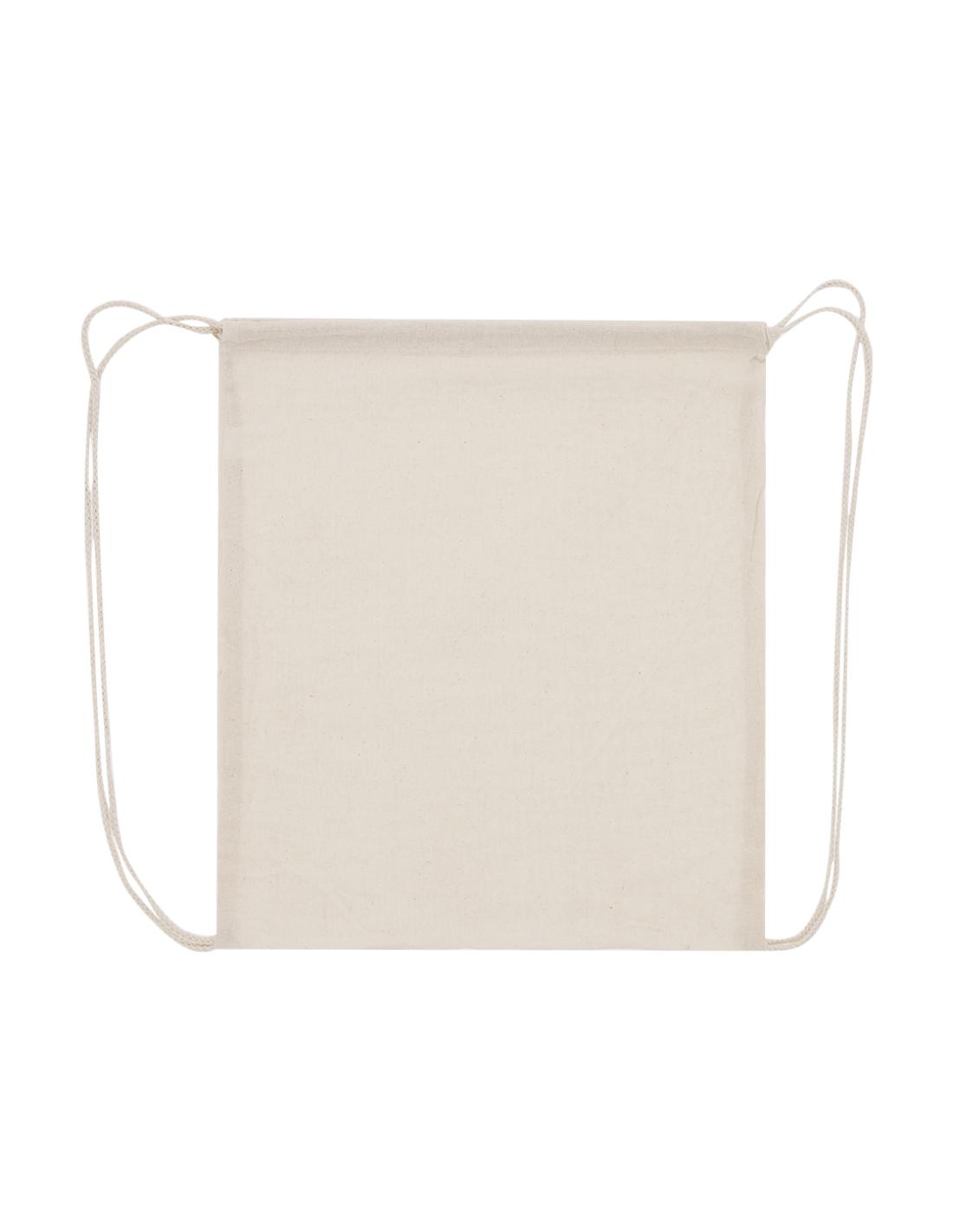 Mochila de cuerdas de línea nature. Fabricada en 100% algodón de 100g/m2 en acabado suave tacto de color natural. Compartimento con cordones en algodón.
