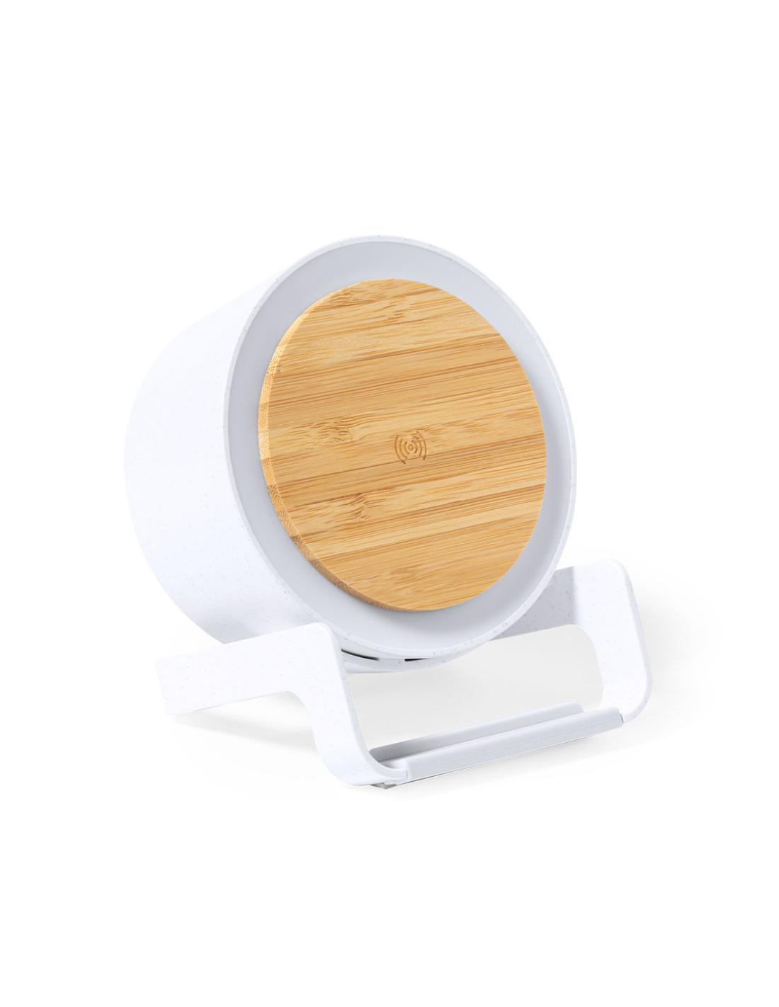 Lámpara multifunción Limited Edition con función altavoz, cargador inalámbrico y soporte para dispositivos móviles. Un moderno y sostenible diseño fabricado en bambú y carcasa en resistente ABS y caña de trigo, para así fomentar la utilización de materias primas naturales y reducir las emisiones contaminantes. Incluye función cargador inalámbrico 10W y lámpara de 12 ledes, con intensidad de luz regulable. Compatible con dispositivos móviles de carga inalámbrica, incluye cable cargador USB C de 100 cm. Altavoz Bluetooth con 3W de potencia. Disponible manual de instrucciones en Español e Inglés. De la perfecta combinación entre exclusividad y diseño, nace Limited Edition, una colección especial de ideas promocionales de edidición limitada. Un nuevo concepto, inspirado en la fusión de artículos premium...