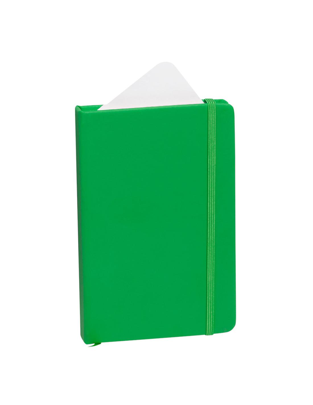 Bloc de notas con tapas duras fabricado en polipiel de suave tacto. Con marcapáginas disponible en variada gama de colores y elástico de cierre a juego. Interior con 100 hojas lisas.