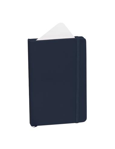 Bloc de notas con tapas duras fabricado en polipiel de suave tacto. Con marcapáginas disponible en variada gama de colores y elástico de cierre a juego. Interior con 100 hojas lisas.
