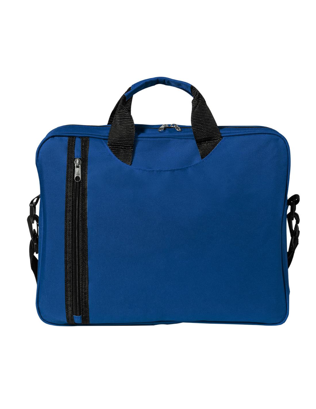 Portadocumentos de cierre de cremallera con original bolsillo frontal en vertical y compartimento bajo las asas en suave acabado de poliéster 600D en vivos colores. Con asas de transporte reforzadas a juego y cinta bandolera ajustable con cierres de mosquetón.