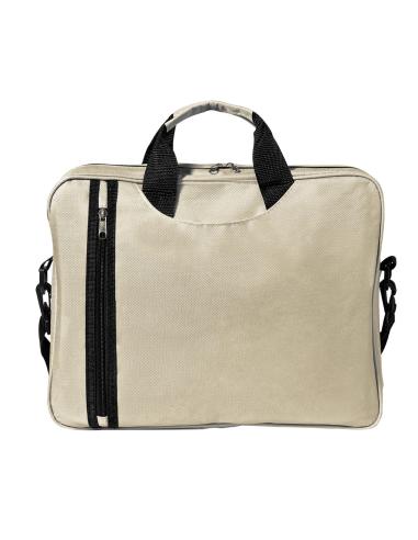 Portadocumentos de cierre de cremallera con original bolsillo frontal en vertical y compartimento bajo las asas en suave acabado de poliéster 600D en vivos colores. Con asas de transporte reforzadas a juego y cinta bandolera ajustable con cierres de mosquetón.