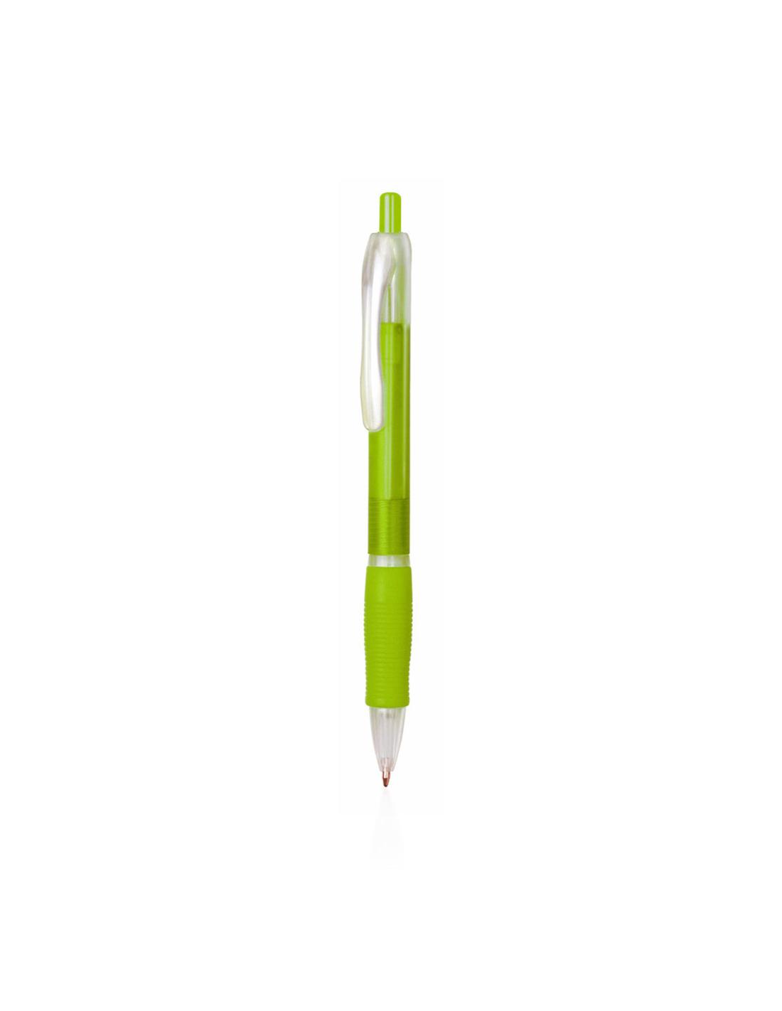 Bolígrafo fabricado en resistente ABS con mecanismo pulsador. Original diseño bicolor de llamativos y variados colores frosted en un suave acabado, con cómoda empuñadura a juego. Tinta azul.