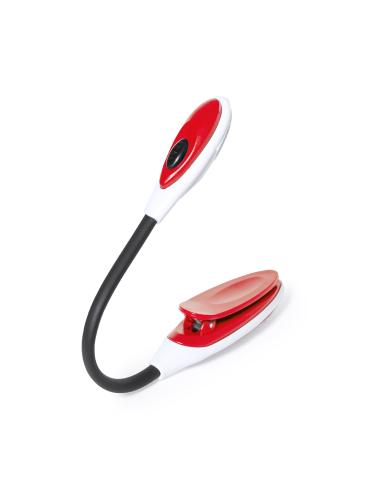 Lámpara led de lectura de diseño bicolor. Con cuerpo flexible y cómoda pinza de sujeción. Presentada en caja individual.