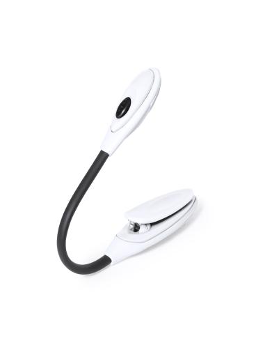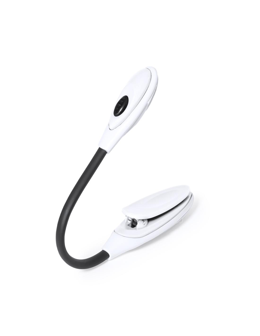 Lámpara led de lectura de diseño bicolor. Con cuerpo flexible y cómoda pinza de sujeción. Presentada en caja individual.