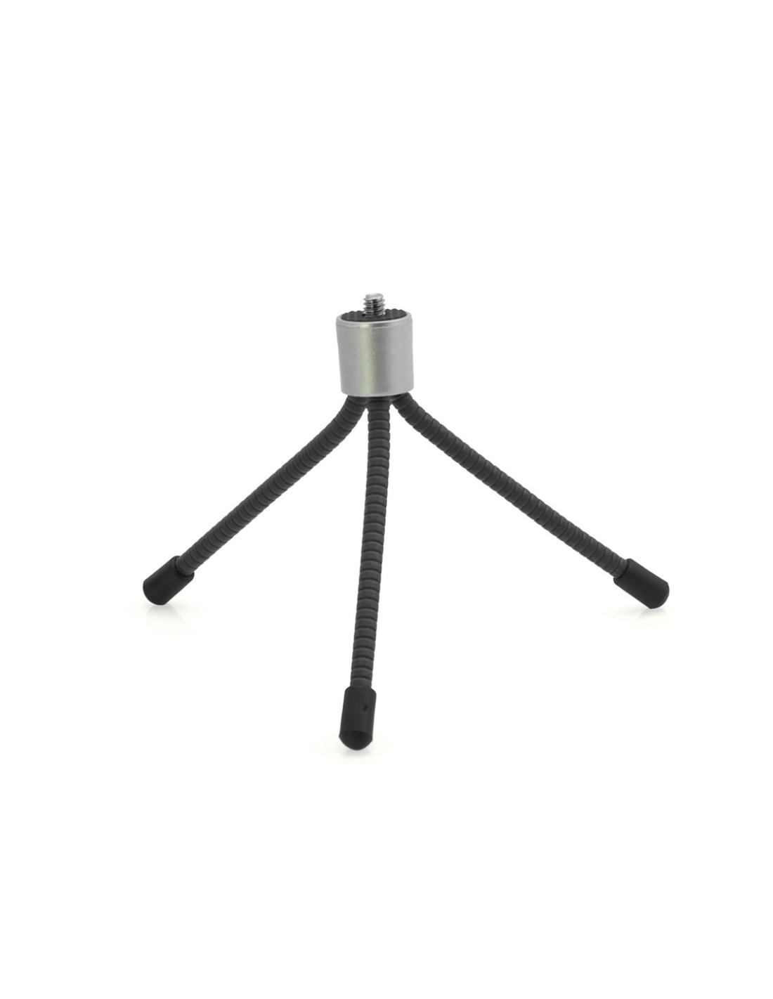 Trípode para cámaras con tornillo de ajuste universal y patas flexibles con acabado en goma antideslizante para fijación en todo tipo de superficies.Presentado en caja individual.