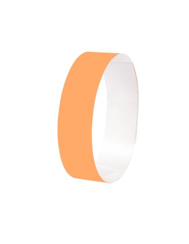 Pulsera para eventos en fibra sintética y variada gama de vivos colores. Con cierre adhesivo, resistente al agua y presentada en plancha troquelada de 10 piezas con numeración individual.