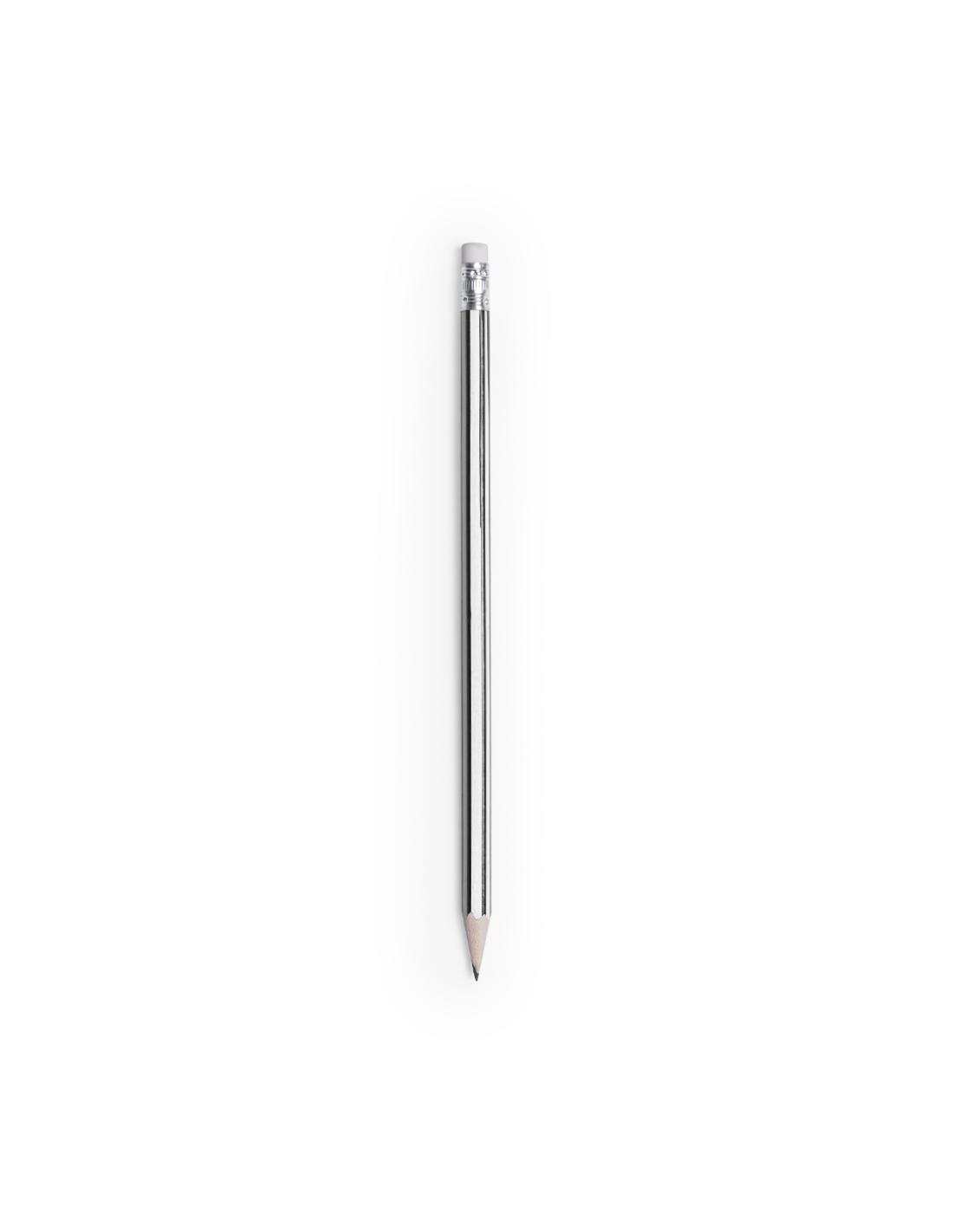 Lápiz de madera de acabado brillo. Cuerpo hexagonal y diseño bicolor, con goma de borrar en color blanco. Disponible en variada gama de colores, con mina negra y punta afilada.
