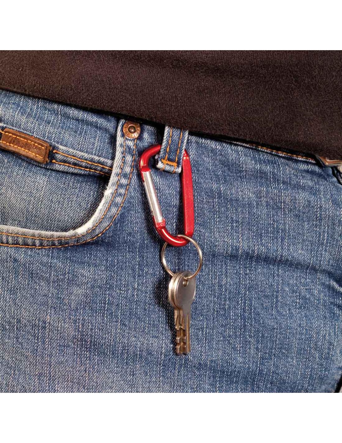Mosquetón de aluminio con cuerpo en suave acabado de vivos y variados colores. Con anilla.
