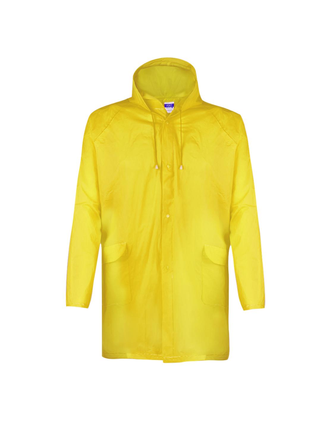 Impermeable en resistente EVA de acabado termosellado en variada gama de colores. Capucha dcon cintas de ajuste, cierre principal de corchete y con bolsillos laterales de solapa. Talla única para adulto.