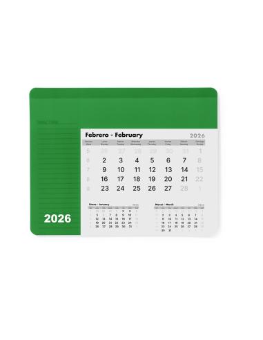 Alfombrilla calendario de suave acabado en PVC. Diseño mes en curso/mes anterior/mes siguiente, con espacio para anotaciones. Base acolchada antideslizante y disponible en variada gama de colores.