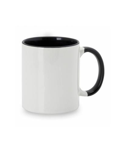 Taza de cerámica de 350ml. Diseño exterior en color blanco especialmente diseñado para la sublimación, pudiendo transferir todo tipo de diseños a todo color, y con una original asa e interior de vivos colores. Cada taza viene presentada en caja individual kraft.