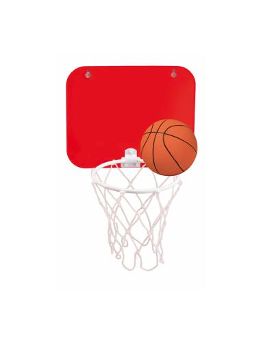 Canasta en PVC con tablero en vivos colores. Con pelota de minibasket incluida y ventosas en parte trasera para fijación.