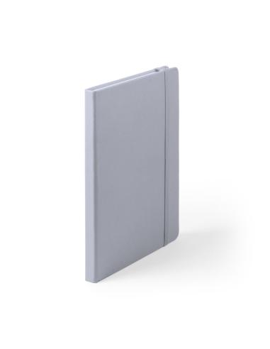 Bloc de notas A5 con tapas duras fabricado en suave polipiel y con 100 hojas lisas. Incluye marcapáginas de tela y banda elástica a juego. Disponible en una extensa gama de colores.