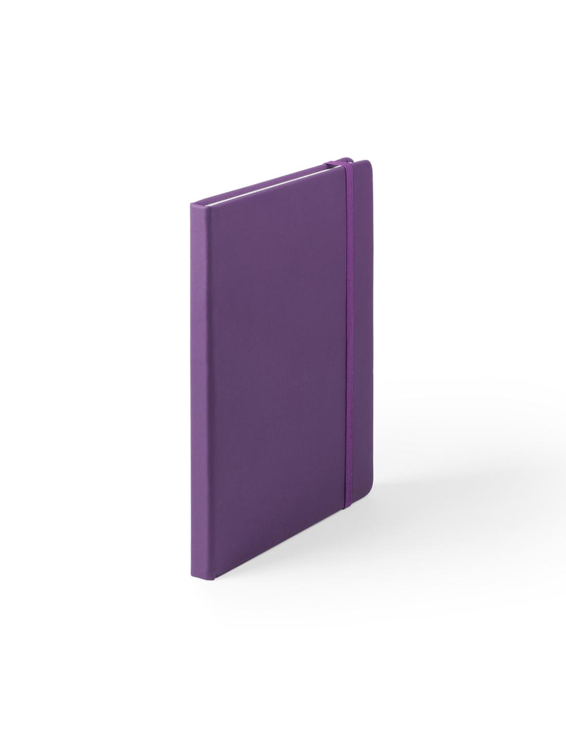Bloc de notas A5 con tapas duras fabricado en suave polipiel y con 100 hojas lisas. Incluye marcapáginas de tela y banda elástica a juego. Disponible en una extensa gama de colores.