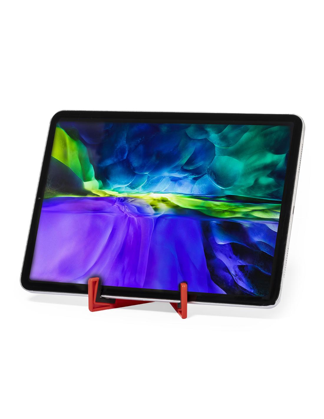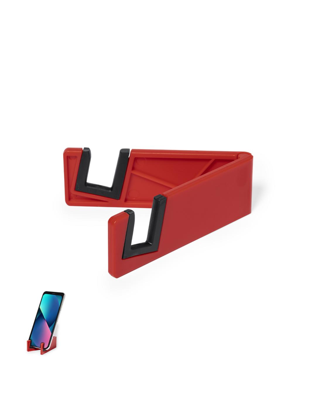 Soporte para dispositivo móvil de patas plegables y topes anideslizantes en PVC. En atrevidos colores y especialmente diseñado para marcaje en tampografía.