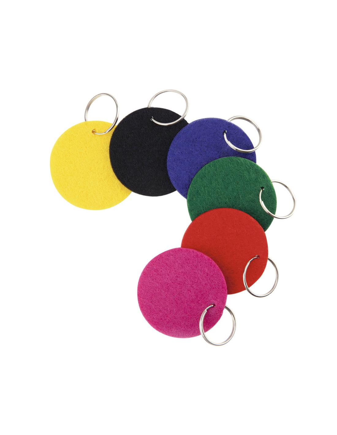 Llavero circular con cuerpo en suave fieltro de variados y vivos colores.