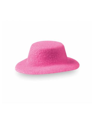 Original pasador de pelo en antelina y con forma de sombrero en variada gama de vivos colores.