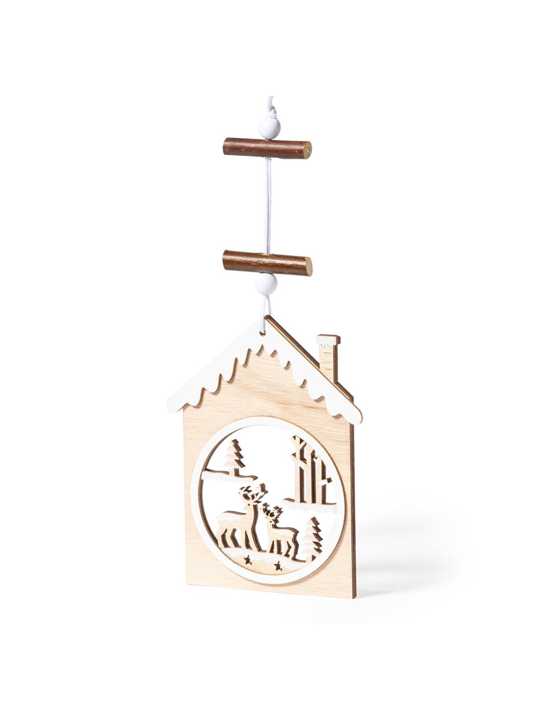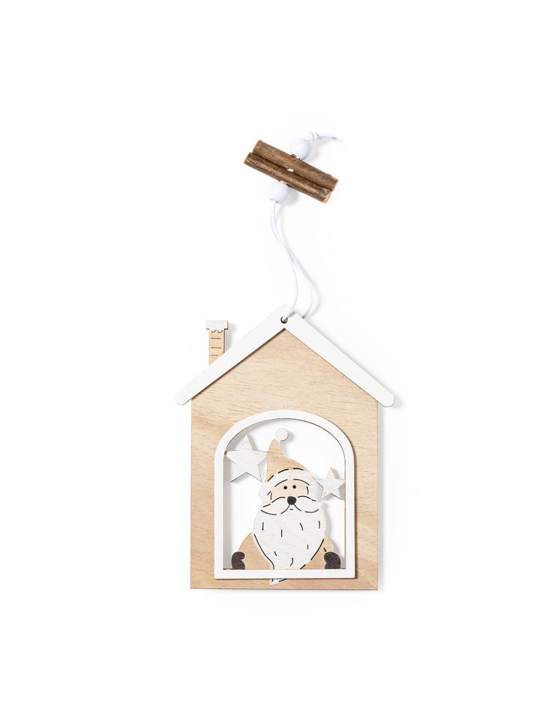Elegante y moderno adorno navideño en madera natural. Incluye accesorio para colgar y está disponibles en dos diseños: Papa Noel y motivos navideños.