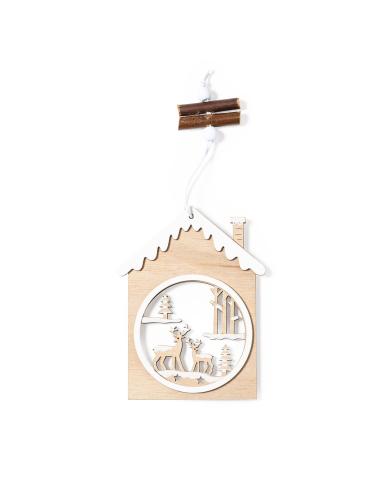 Elegante y moderno adorno navideño en madera natural. Incluye accesorio para colgar y está disponibles en dos diseños: Papa Noel y motivos navideños.