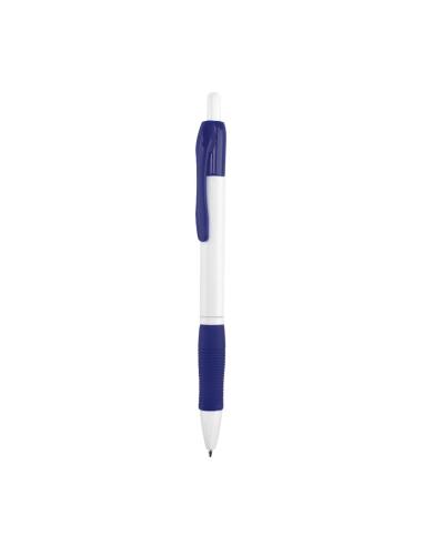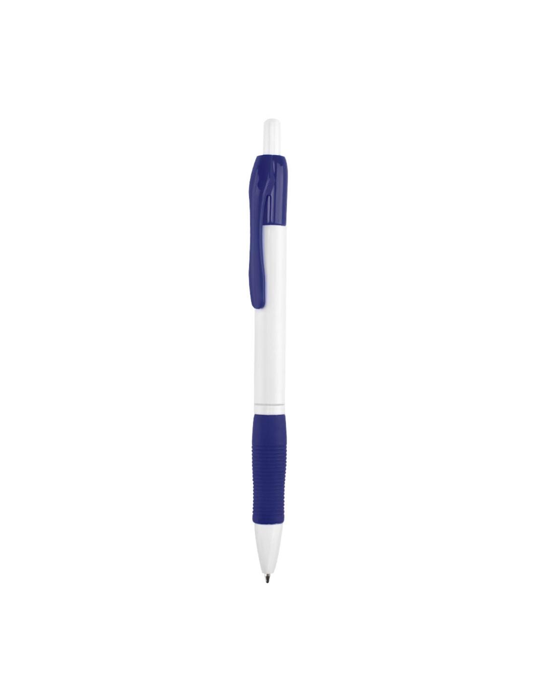 Clásico bolígrafo con mecanismo de pulsador, de atrevido diseño y cuerpo de color blanco sólido en suave acabado. Con cómoda empuñadura y clip a juego. Tinta azul.