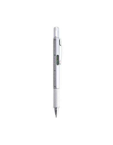 Bolígrafo multiherramienta 4 en 1 de mecanismo giratorio, en variados colores y con suave empuñadura. Con nivel integrado en cuerpo, regla con sistema métrico en centímetros/pulgadas y destornillador de doble cabeza -plana y de estrella-. Con clip metálico y tinta azul.