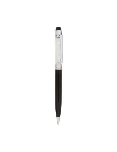 Original bolígrafo puntero de mecanismo giratorio con divertido líquido burbujeante en parte superior. Cuerpo metálico en suave acabado de vivos colores y accesorios en color plateado brillante. En tinta azul.